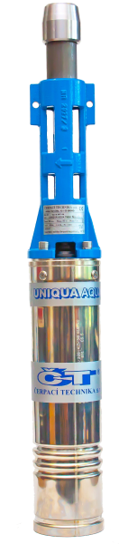 The submersible pump UNIQUA AQUA is used to draw drinking water, clean water and industrial water. The pump is suitable for pumping clean water from wells, from bores with minimal diameter of 100 mm to supply of households and tanks, or can be used for irrigation system with the maximal immersion of 60 meters. This pump can't be used for pumping waste water. To use the pump for pumping flammable liquids, toxic liquid substance (acid, alkali) and all oil products is forbidden! To use the pump in a place danger of explosion and in swimming pools where people are in contact with water, is forbidden, too. When pumping industrial water, mineral water or mining water, the maximal allowed pollution quality and concentration of hydrogen ions in the water must be observed to support the durability and reliability of the pump. The producer can make pump with different cable lengths, in accordance with the with wish of the costumer. The maximal temperature of water for pumping is 35°C. The pump can be used in vertical, horizontal or tilted position.