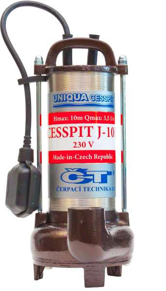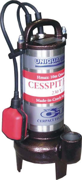 Submersible sludge pump UNIQUA CESSPIT is used for transferring and draining water, sediments and feces. To use the pump for pumping flammable liquid, toxic liquid substance (acid, alkali) is forbidden! To use the pump in a place with a threat of explosion is forbidden too. The producer can make pumps with a different length of cable compliance according to the wish of a costumer. The pumps can by used in vertical, horizontal or tilted position.
